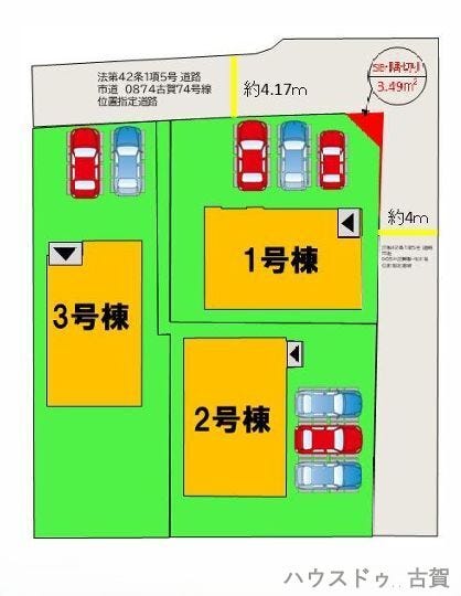 土地面積 実176.66㎡(53.43坪) 接道 北側(公道)幅 約4.1m