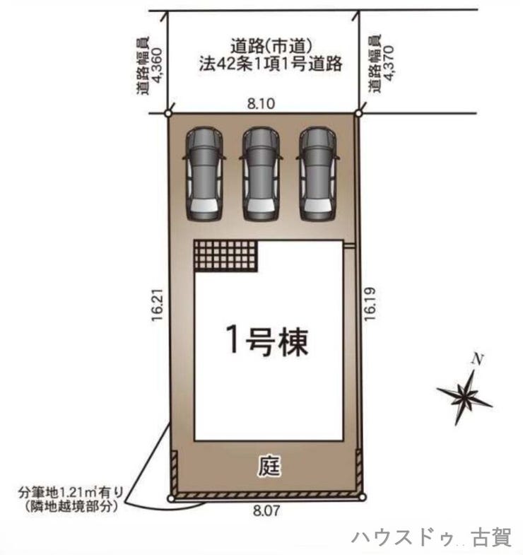 土地面積 実131.1㎡(39.65坪) 接道 北側(公道)幅 約4.3m 間口 約8.10m